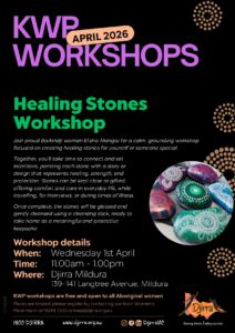 To avoid missing out, please make sure to register by calling the Koori Women’s Place on 9244 3333 or kwp@djirra.org.au